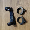 Sehr seltene und originale Blaser Aufschubmontage für die Prismenschiene der Bockbüchsflinte Modelle ES63, ES67 und ES70 - vermutlich passt die Montage auch bei anderen Waffen mit der Prismenschiene. Mit der Montage kann eine Bockbüchsflinte schnell und günstig mit einem variablen Zielfernrohr ausgestattet werden. Dabei sind 25,4 mm Ringe aus Aluminium und 30 mm Montageringe aus Stahl (EAW?). Verkauf erfolgt ausdrücklich von Privat ohne jegliche Garantie oder Gewährleistung sowie Rücknahme. Versand und Paypal gerne gegen Kostenübernahme möglich, Versandkosten innerhalb der EU bitte vor Kauf anfragen.