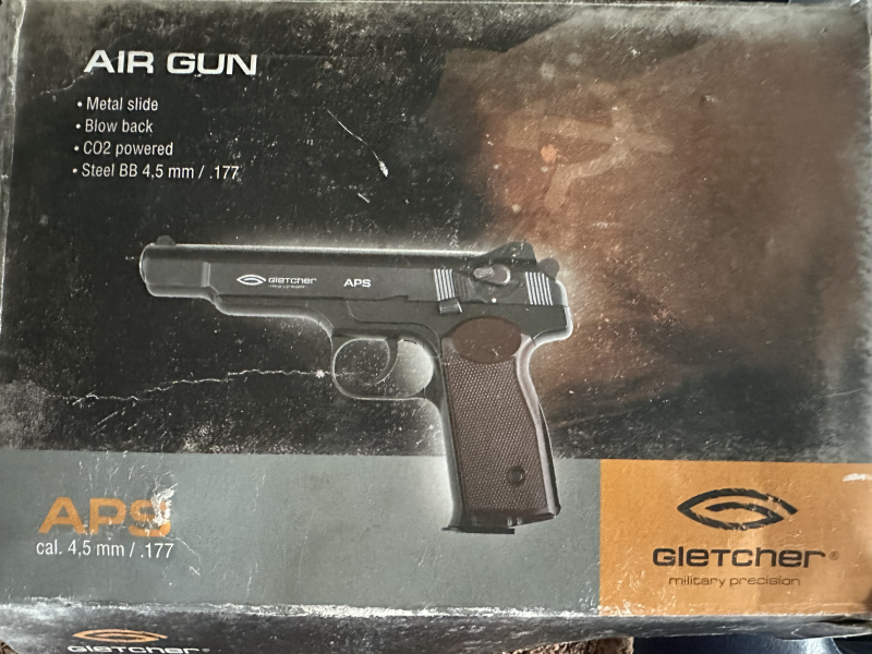 Hallo hier mit möchte ich eine APS CO2 pistole anbieten . Ist gebrauch , Dichtungen halten noch super. Schlüssel und originalkarton sind dabei 10 CO2 Kartuschen sind mitdabei ! Keine Garantie und keine Rücknahme . Mit F !!