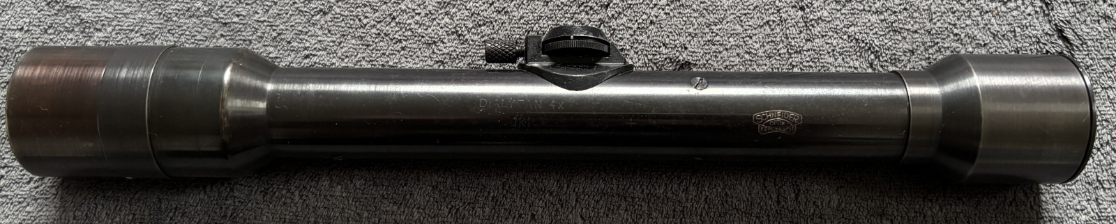 Das ZF hat folgende Beschriftung : DIALYTAN 4x dkl + sowie das Logo Schneider Optik Kreuznach ( siehe Fotos )