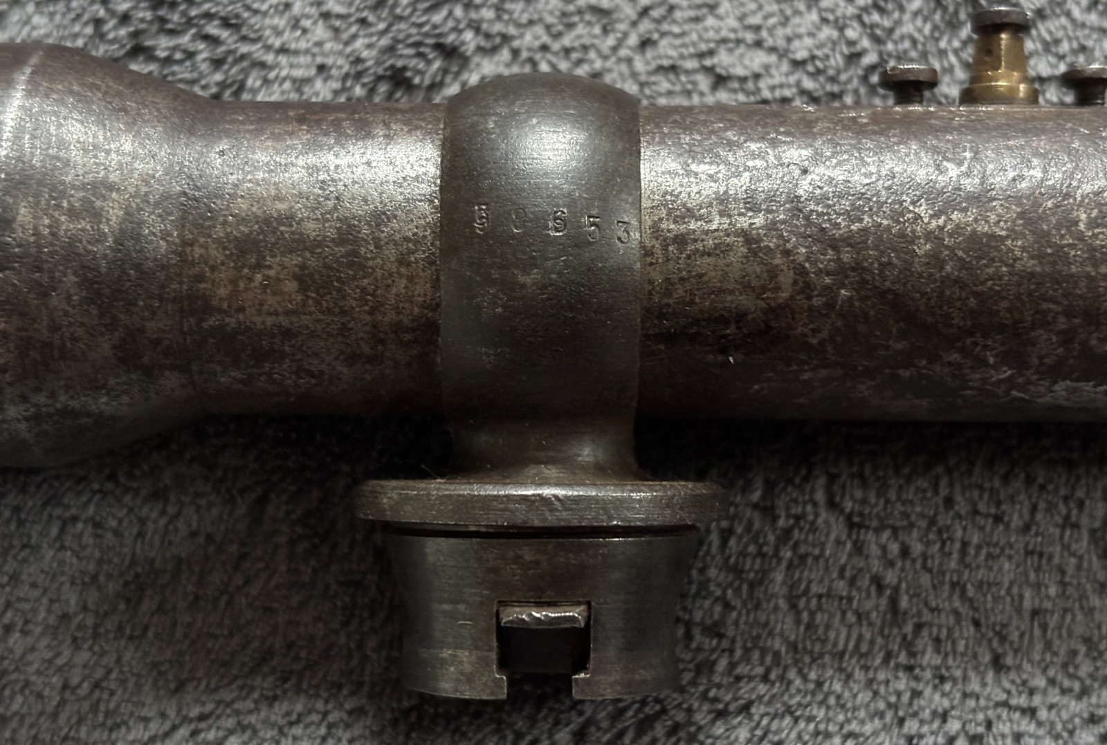 Auf dem vorderen Montagering ist die ehemalige Gewehrnummer : 58653 sowie auf der Oberseite ein A eingestempelt !