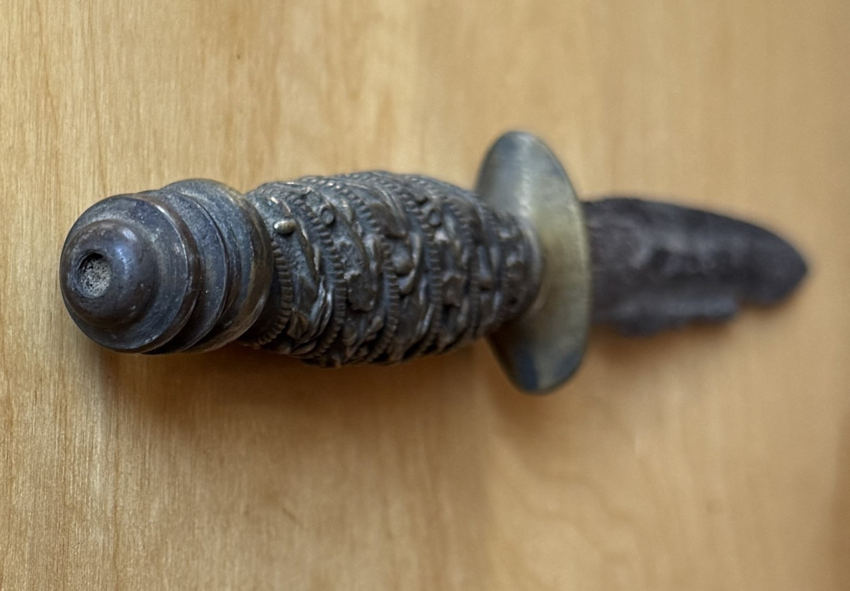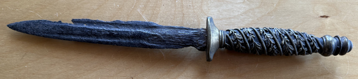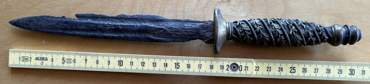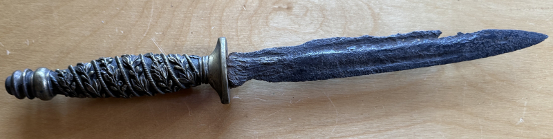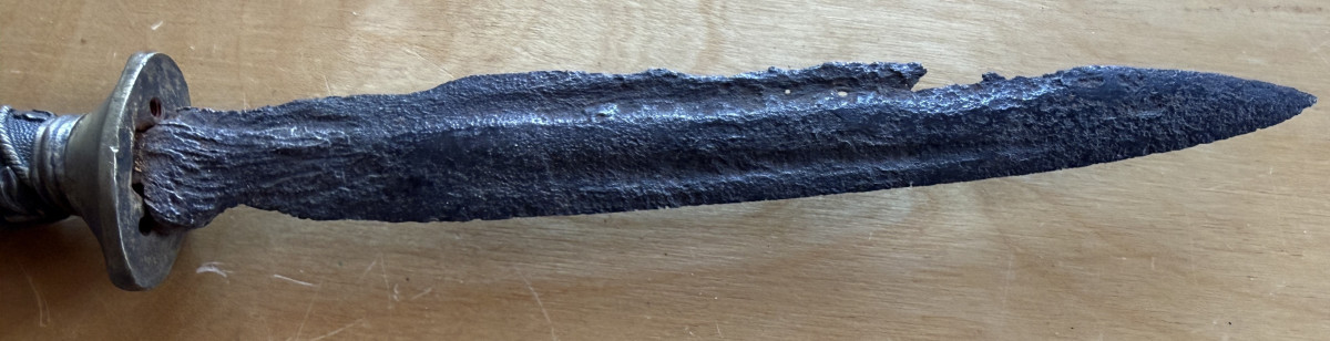 Die Klinge ist natürlich hin, Aber für Sammler ist es sicherlich geschichtlich nicht uninteressant. Und die Parier-Stange sitzt nicht fest.