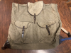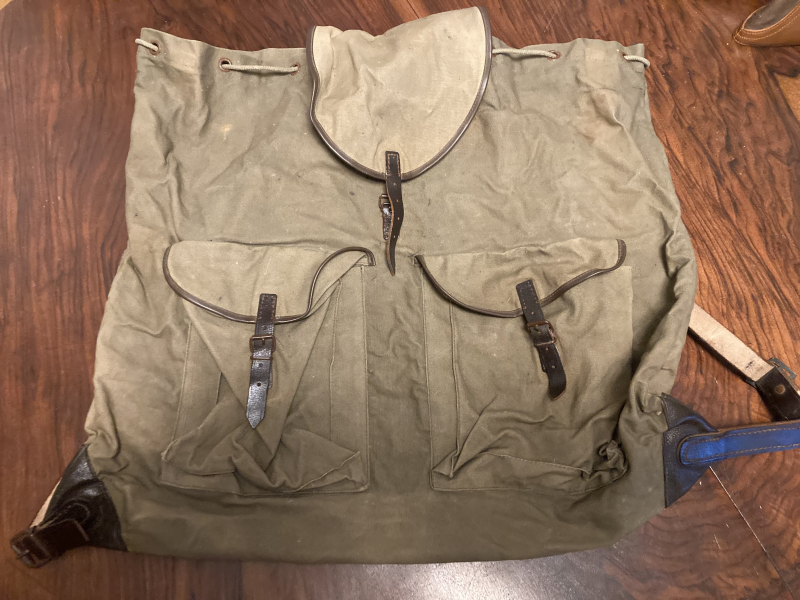 Hier kommt zur Versteigerung ein gebrauchter grüner Jagdrucksack mit verstellbaren Trageriemen in Canvas grün. 2 Vordertaschen. 8 innenliegende Lederschlaufen für einen Schweißsack, ein mobiler Befestigung-Knopf fehlt. Breite ca. 55 cm, Höhe ca. 50 cm. Die Metallteile haben auf Grund des Alters etwas Flugrost. Privatverkauf. DHL-Versand innerhalb Deutschland.