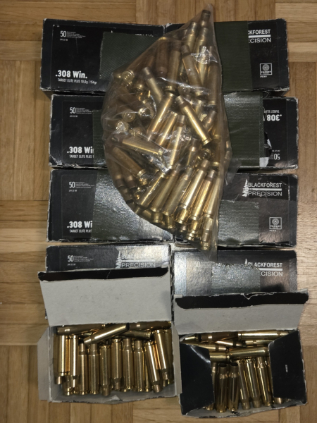 Verkaufe 600 Stk Boxerhülsen Kal. 308Win RWS Target Elite Plus Match + 111 Stk Norma Matchhülsen, alles Boxer (RWS Verpackungen fast alle vorhanden Soderserie für Black Forrest Precision). 400Stk von den RWS Hülsen sind Vollkalibriert, Hals geglüht, getrimmt und Hülsenmund entgratet(sonst nichts gemacht). Egun ich Versand der Käufer ,EU Versand ist möglich ca.20€ .Keine Garantie,Umtausch oder Rücknahme. Siehe auch meine anderen Auktionen-Preisvorschläge sind möglich.