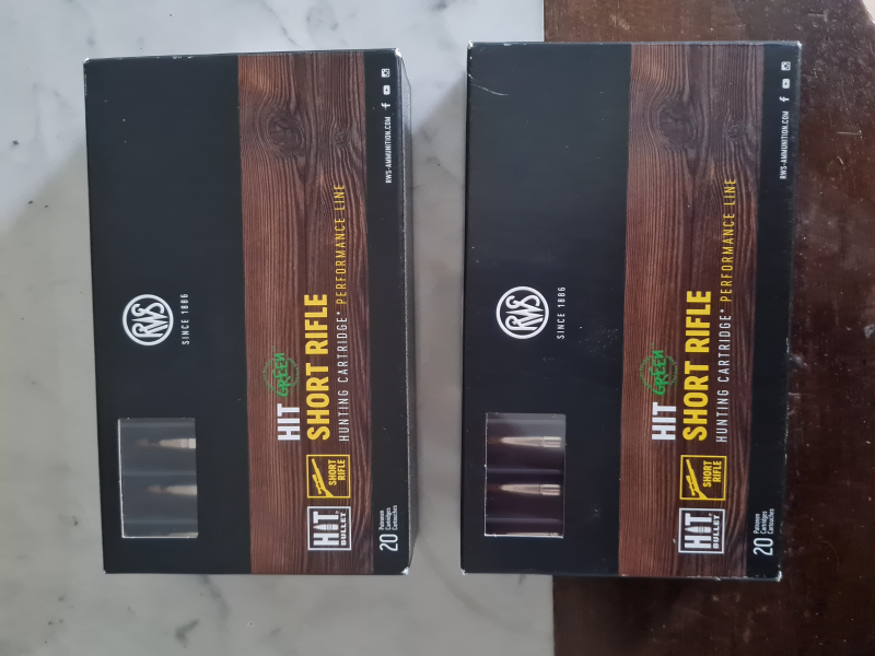 2 Pakete RWS Hit short Rifle 30-06 ein Los, Geschossgewicht 165gr. Bei einem Paket fehlt 1 Patrone. Insgesamt also 39 Schuss.