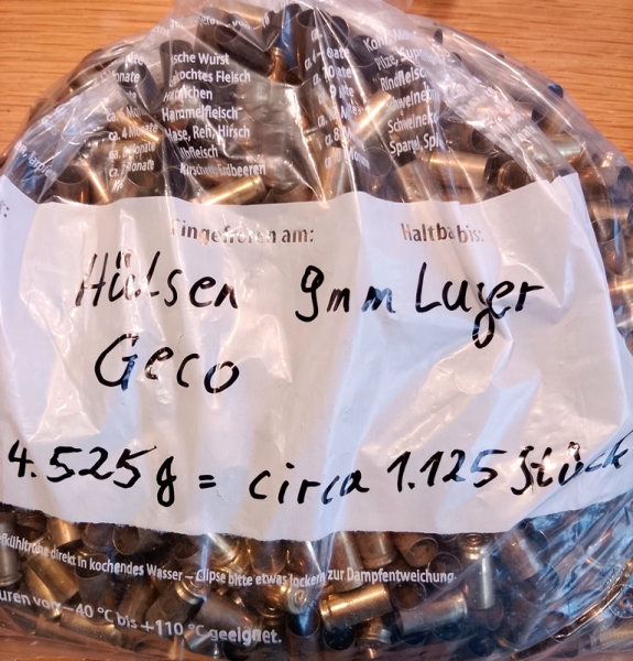 Hülsen Geco 9mm Luger einmal abgeschossen ca. 1125 Stck