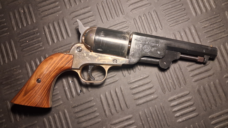 Ein Echtholzgriff in wunderschöner Maserung und ein allgemein sehr guter Zustand machen diesen Revolver zum Sammlerstück.