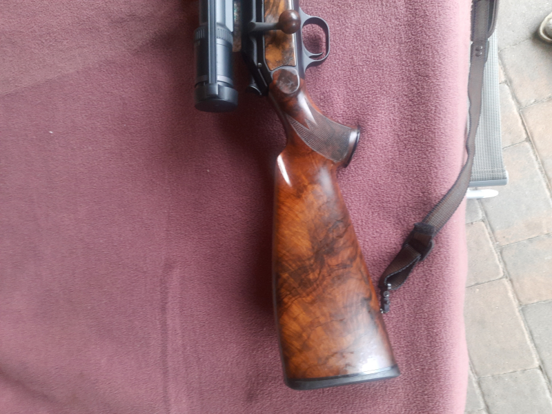 Blaser R93 Attache im Kaliber .30-06, Lauf kanneliert, Mündungsgewinde 15/1, ausgesuchtes Sonderholz, Zeiss 3-12x56 VM Abs. 4 beleuchtet, Schalldämpfer Roedale. (Gewehrriemen gehört nicht zum Lieferumfang). Die Waffe wurde jagdlich geführt und hat dementsprechend die üblichen Gebrauchsspuren. Bei Abholung kostenlose Restmunition (Norma TXP). Besichtigung erwünscht. Waffe kann in NRW oder Brandenburg abgeholt werden.