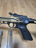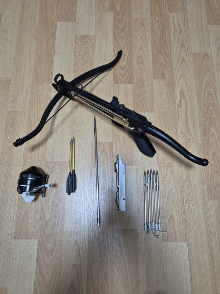Verkaufe eine Pistolenarmbrust. Befindet sich in einem top Zustand. Dabei sind zwei Bolzen. Ein Harpunenpfeil mit laufendem Ring, wie es sich an der Harpune gehört (es sind noch 5 Pfeile dabei, aus den man noch Harpunenpfeile machen kann. Die Widerhacken sind klappbar. Die Rollenmontage habe ich selbst gefräst und aufgearbeitet aus Duraluminium. Dazu gibt es noch eine Zebco 202 Rolle. Das Set ist nur für Ausland geeignet.