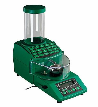 Der automatische Pulverfüller ChargeMaster Combo besteht aus dem ChargeMaster Dispenser und der angekoppelten Präzisionswaage die vormontiert ist. Eine unübertroffene Kombination aus Geschwindigkeit und Genauigkeit. Füllen Sie einfach den Behälter mit NC-Pulver, geben Sie die gewünschte Ladung ein und drücken Sie die Ausgabetaste. Die durchschnittliche Abgabezeit beträgt weniger als 30 Sekunden für eine extrudierte Pulverladung mit 60 grain. Besonders für Langwaffenpatronen zu empfehlen.