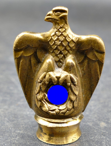 Sammlungsauflösung siehe Bilder . Knauf für den Marinedolch aus Herstellerbestand (Paul Weyersberg & Co. Solingen?). Gewinde ist M5 . Größe h=4,2 cm, b= 2,8 cm unterer Durchmesser ca. 1,5 cm.Gewicht ca. 50,9 Gramm.Lässt sich durch Polieren wieder auf Hochglanz bringen . Weitere Bilder auf Anfrage. Bitte §§ 86 und 86a beachten. (sss)