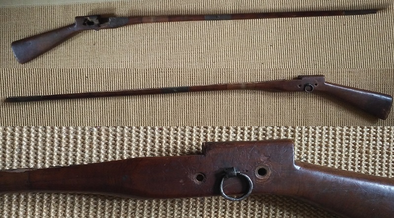 Sie bieten auf einen originalen Schaft, wohl für einen osmanisches Tüfeng-Steinschloßgewehr. Einfache, klassische Schäftung, sehr schlankes Laufbett. Bis auf den Riemen-Ring, keine weiteren Anbauteile, es wird nur der Schaft angeboten, so wie er auf den Bildern zu sehen ist. Länge 154 cm. Der Schaft zeigt stärkere Gebrauchs/Alterungsspuren und alte Reperaturstellen, wie sie nach so langem Gebrauch zu erwarten sind. Der Schaft ist angebrochen, siehe rote Markierungen auf den Bildern.