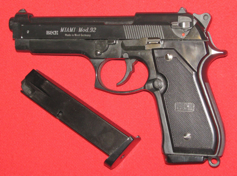 Zum Verkauf kommt eine Umarex Reck Schreckschuss- Pistole, eine Umarex Reck MIAMI 92 mit der PTB 481