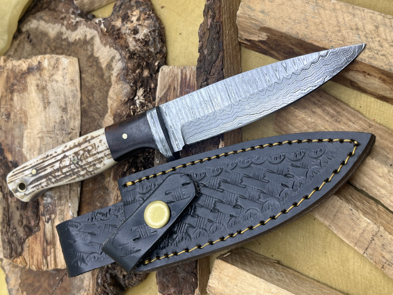 Über 200 Lagen Damaststahl • Knochen Griff • Inklusive Lederscheide
