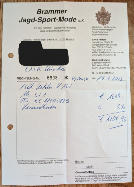 Die Originalrechnung mit Seriennummer wird mitgeliefert.