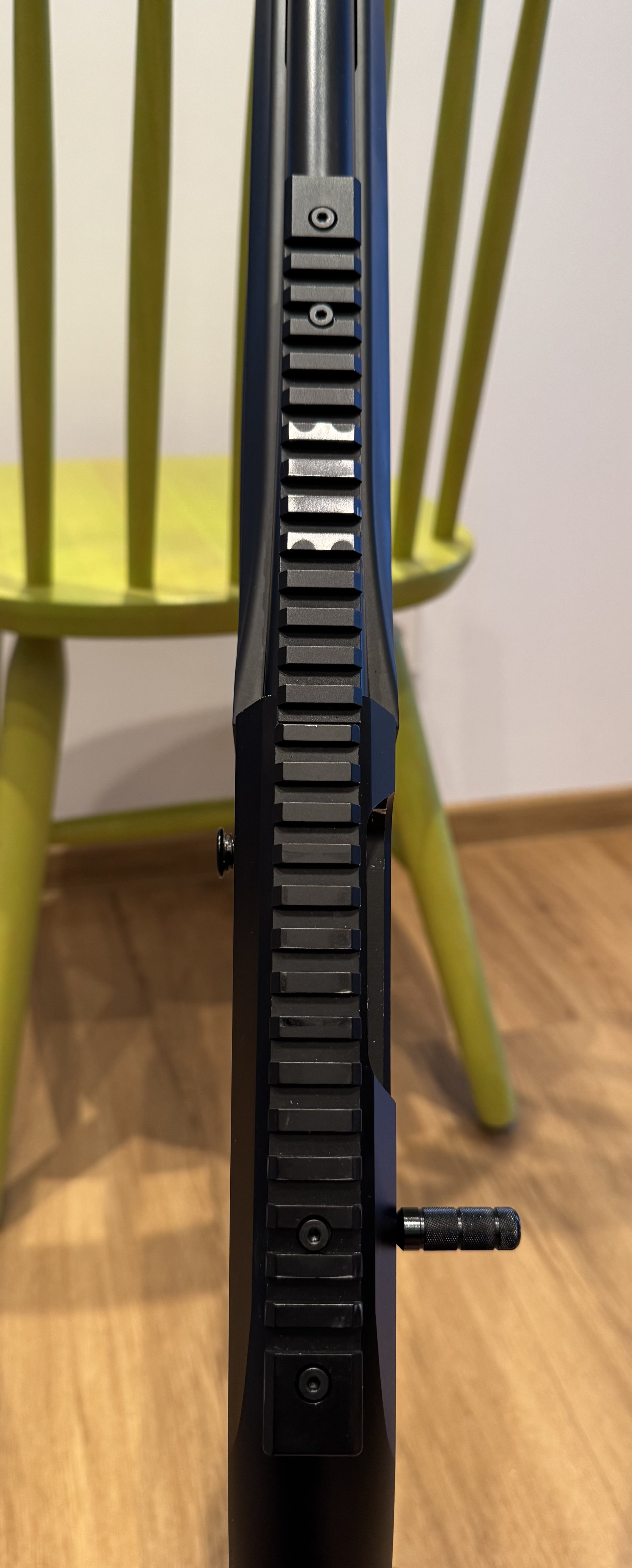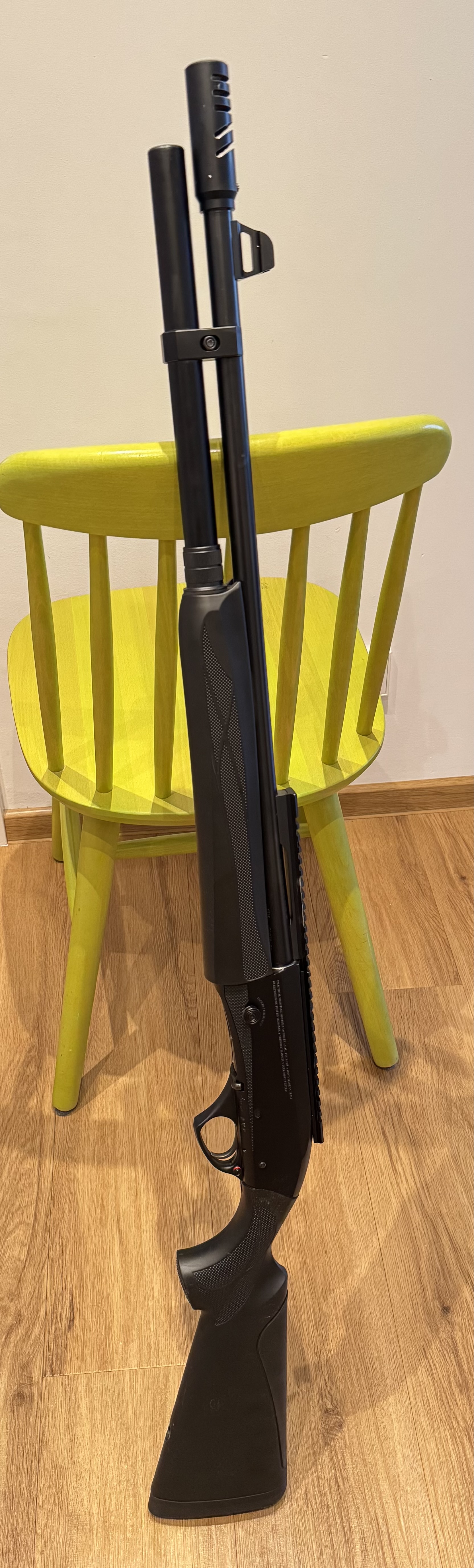Durch die Picatinny Rail kann problemlos eine Optik montiert werden. Es können Wechselchokes verwendet werden, montiert ist ein Kompensator mit Zylinder.