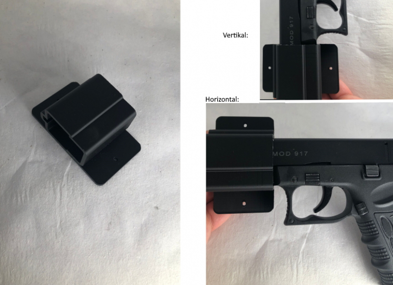Wanhalterung für die Zoraki 917. Damit kann man die Zoraki ansprechend an der Wand befestigen. Getestet ist es und die zwei Verbindungen reichen vollkommen aus um alles tragen zu können. Schrauben sind nicht dabei.