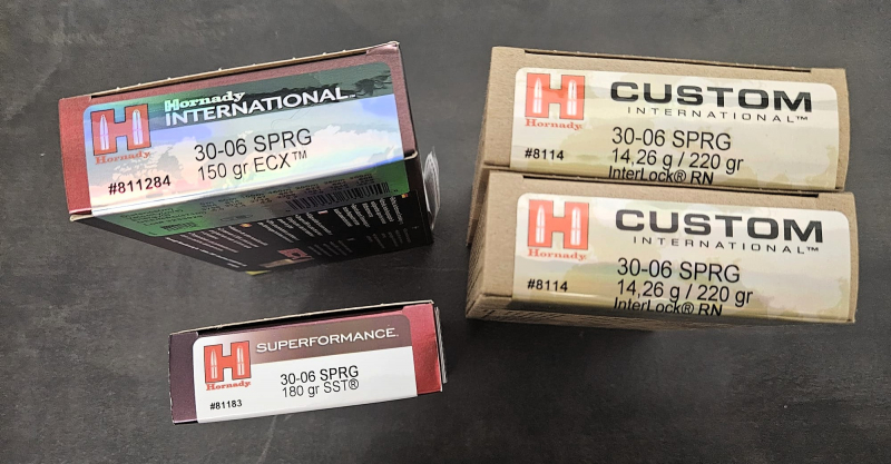 und 40 Schuss Hornady .30-06 Spr. Inter Lock 220 gr. diese Patrone ist nicht Bleifrei!!