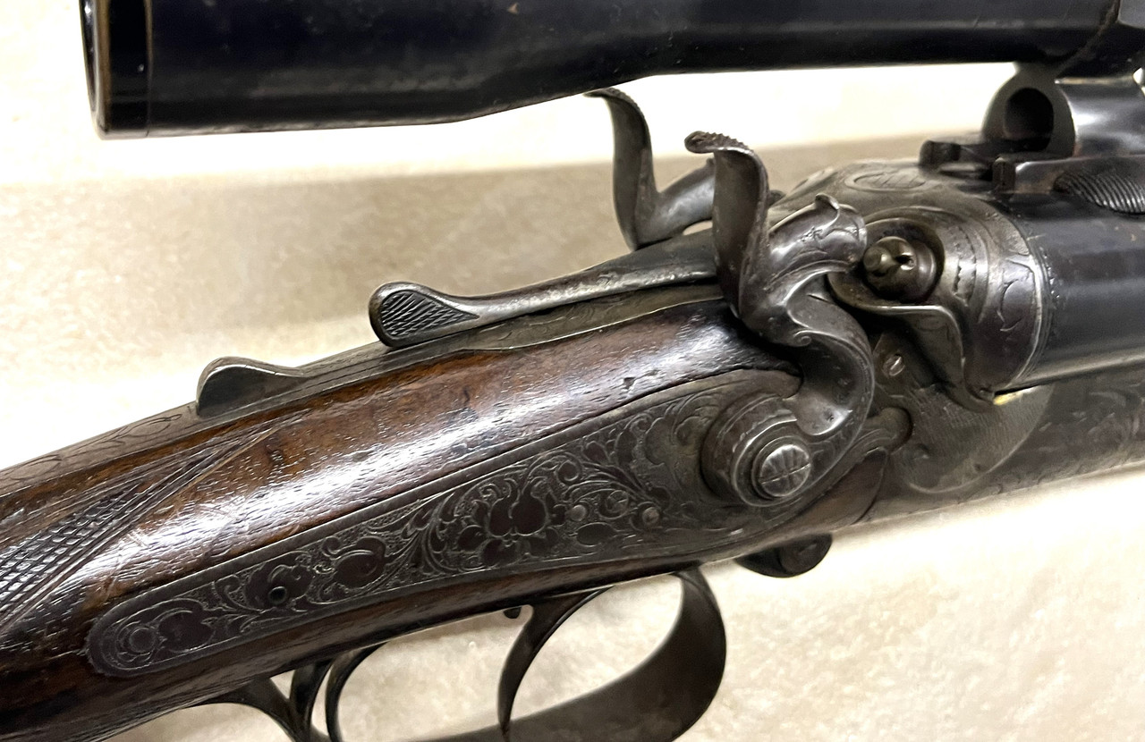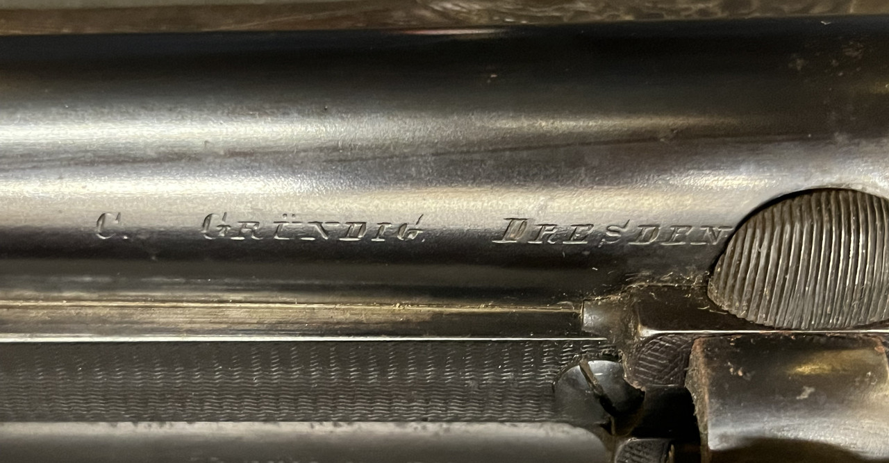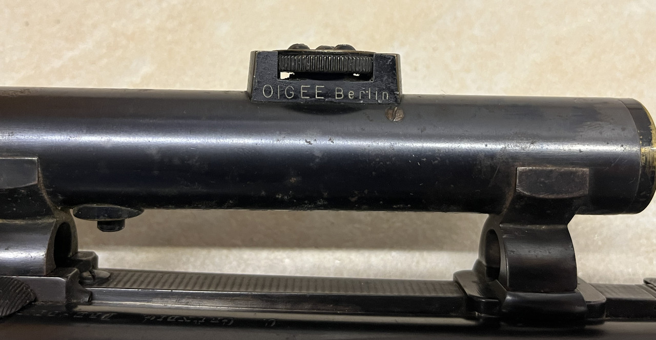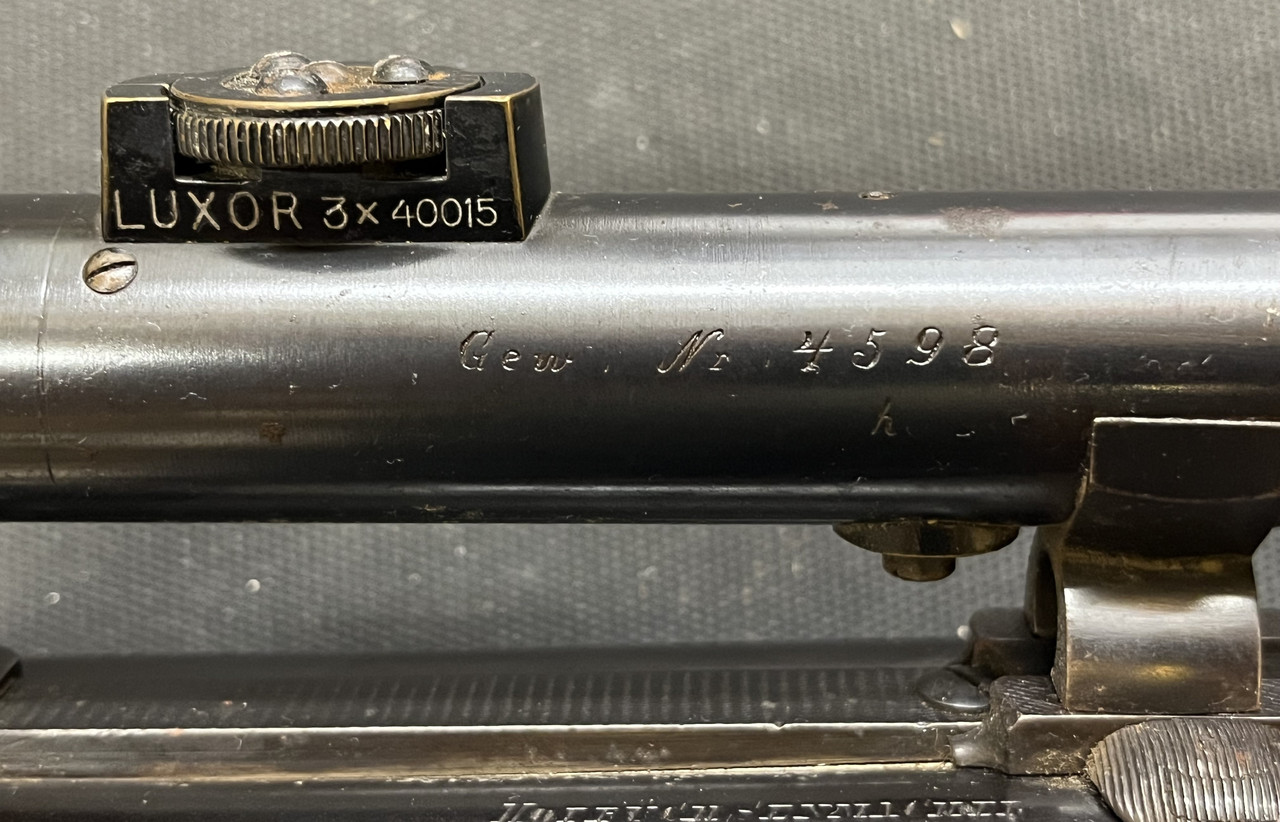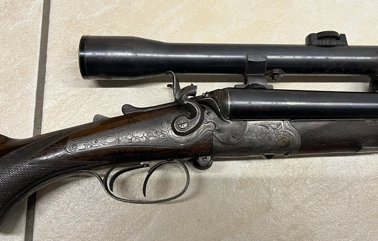 Carl Gründig (1852-1913) Dresden Drilling vermulich um das Jahr 1900 mit einem WK I Zielfernroh Absehen 1. Dieses ist meiner Meinung nach nur "trüb" das es an den Lisen Patina hat.