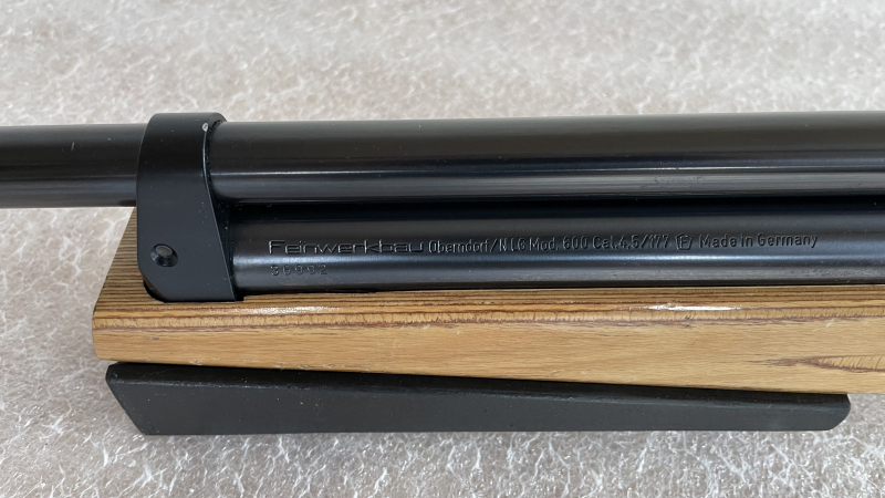 Die Brünierung ist tief schwarz, hat jedoch leichte Kratzspuren. An der Schaftunterseite sind Druckstellen vom Ablegen, ein Schriftzug am Sitz des Spannhebels. Dichtungen sind alle aktuell.
