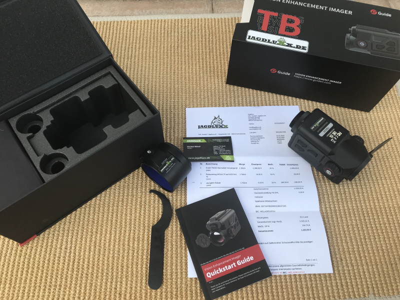 Angeboten wird hier ein wenig geführtes Guide TB430 Wärmebildvorsatzgerät, das erst am 31.01.2025 gekauft wurde. Die Rechnung liegt bei, sodass noch Garantie besteht.