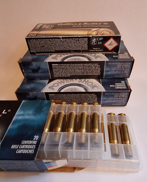 80 Hülsen .30-30 (20 Stück S&B, 60 Stück Federal) ein mal abgeschossen.