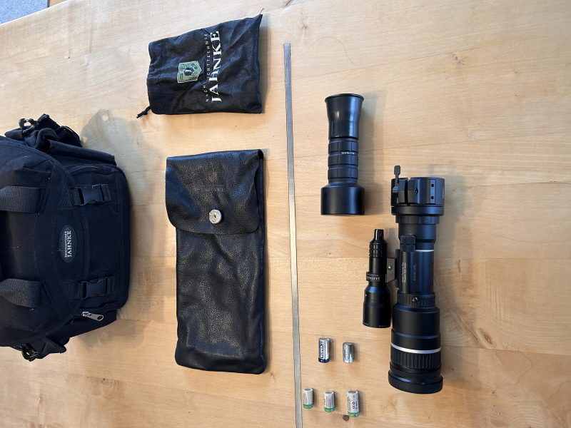 Das Nachtsichtgerät befindet sich in einem hervorragenden Zustand und wird mit Optikeinheit (350,-) zur Handbeobachtung und neuwertigen Akkus geliefert. Der Neupreis des Pakets liegt bei 5200,- Euro - Rechnung vorhanden!