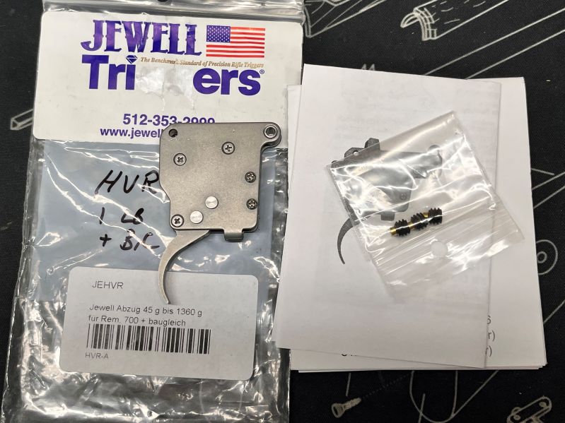 Versteige einen Abzug von Jewell für Remington 700 Model und baugleiche (Bergara etc.). Direktabzug mit einem Verstellbereich von 45g bis 1360g, je nach Wunsch. Der Trigger ist ca. 2 Jahre alt und funktioniert tadellos. War die Zeit an einer Walküre 6,5 Creedmoor.