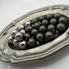 Durch das Trommeln wird das überschüssige Material des Gussbutzens umgeformt. Die Form der Kugel wird dadurch leicht unrund. Dies ist technisch bedingt nicht anders möglich und kein Reklamationsgrund. Der Kugeldurchmesser bewegt sich in einem Toleranzbereich von ca. ± 15 Hundertstel.