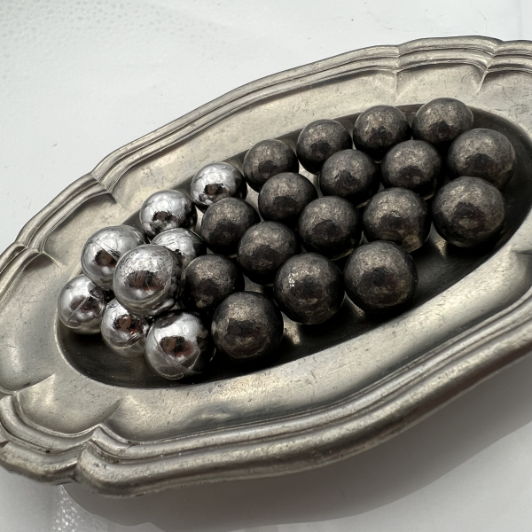 Die Kugeln sind mit etwas Graphit und Wachs behandelt. Dadurch glänzen sie sehr schön und man bekommt keine allzu schwarze Finger durch das Graphit.