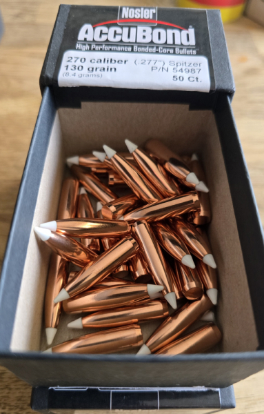 Moin. Verkauft werden hier 84 Geschosse Nosler Accubond .270 (.277) Dia, 130 grs Spitzer.