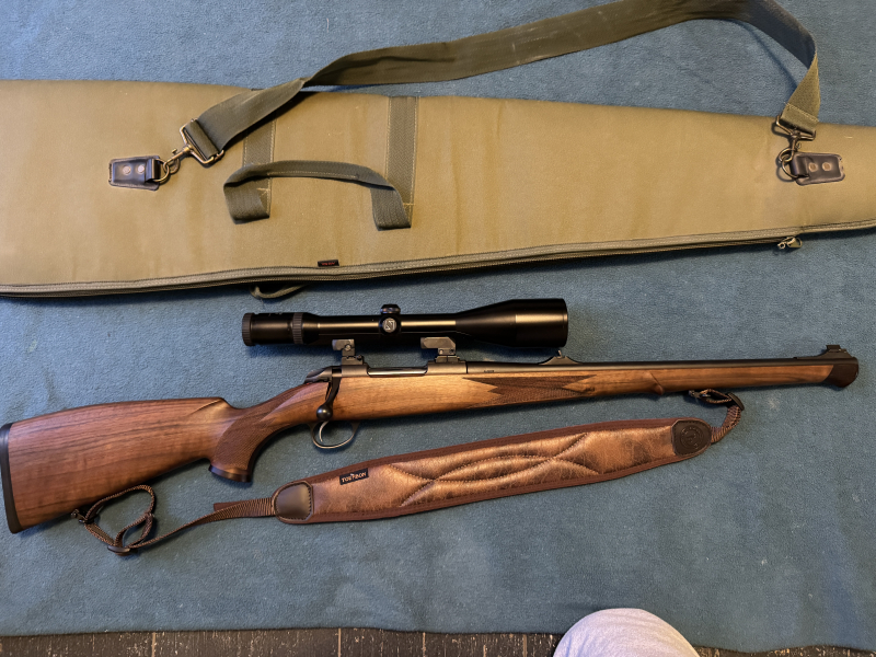 Zubehör: Futteral, Gewehrriemen (Tourbon), Zeiss Diavari-ZM 3-12x56 T* auf EAW Schwenkmontage (montiert und eingeschossen bei Triebel Berlin),