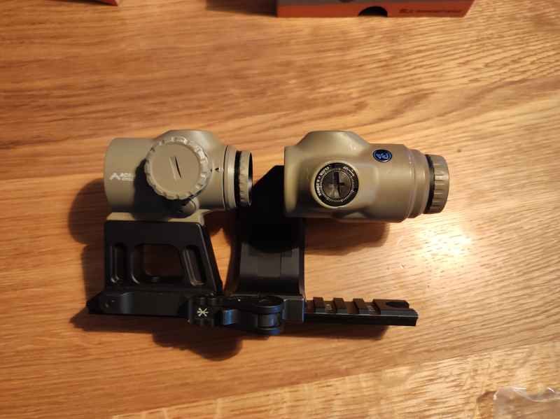 Ich verkaufe hier meine Primary Arms Optik die ich vorher im dynamischen Schießen verwendet habe. SLX1 Prism Optic mit .223 Cyclops absehen, Primary Arms x3 Magnifier. Die Primary Arms Optiken kommen mit all den original Teilen. Dazu gibt es noch original Unity Mounts (keine China Fakes) um die Optiken auf 2.26" Höhe zu montieren. Die Unity Magnifiermount ist eine Flip-to-center!