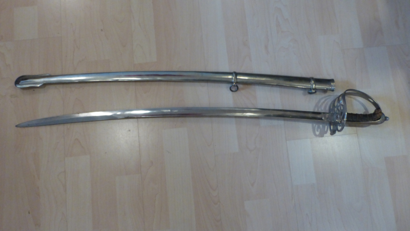Sie bieten auf einen Säbel mit Scheide. Die Klinge ist stumpf, reines Dekorationsobjekt. Der Säbel ist schon einige Jahrzehnte alt, kein Dünnblech aus China. Massiv verarbeitet, mit Drahtwicklungen um den Griff, Abnutzungsspuren, sieht sehr authentisch aus. Gesamtlänge 98cm - Gewicht 1380g - Versicherter Versand innerhalbe Deutschland 7,50€ - Dieses ist eine Privatauktion, keine Garantie oder Rücknahme.