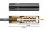 Über das Mündungsgewinde kann der Schalldämpfer jederzeit montiert und demontiert werden. Das Gewinde kann bei Abnahme des Schalldämpfers einfach mit einer Gewindeschutzkappe verdeckt werden welches die Nutzung ohne Dämpfer oder den sicheren Transport erleichtert.