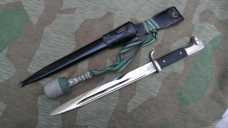 Sie bieten auf ein sehr schönes Wehrmacht Ausgeh-Bajonett mit Koppelschuh und Uffz-Troddel 2.Weltkrieg.-------------