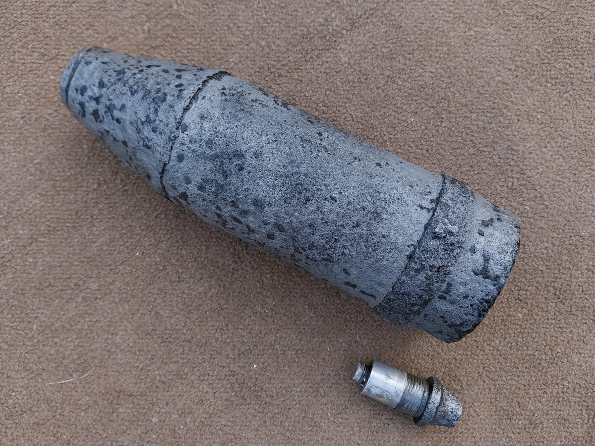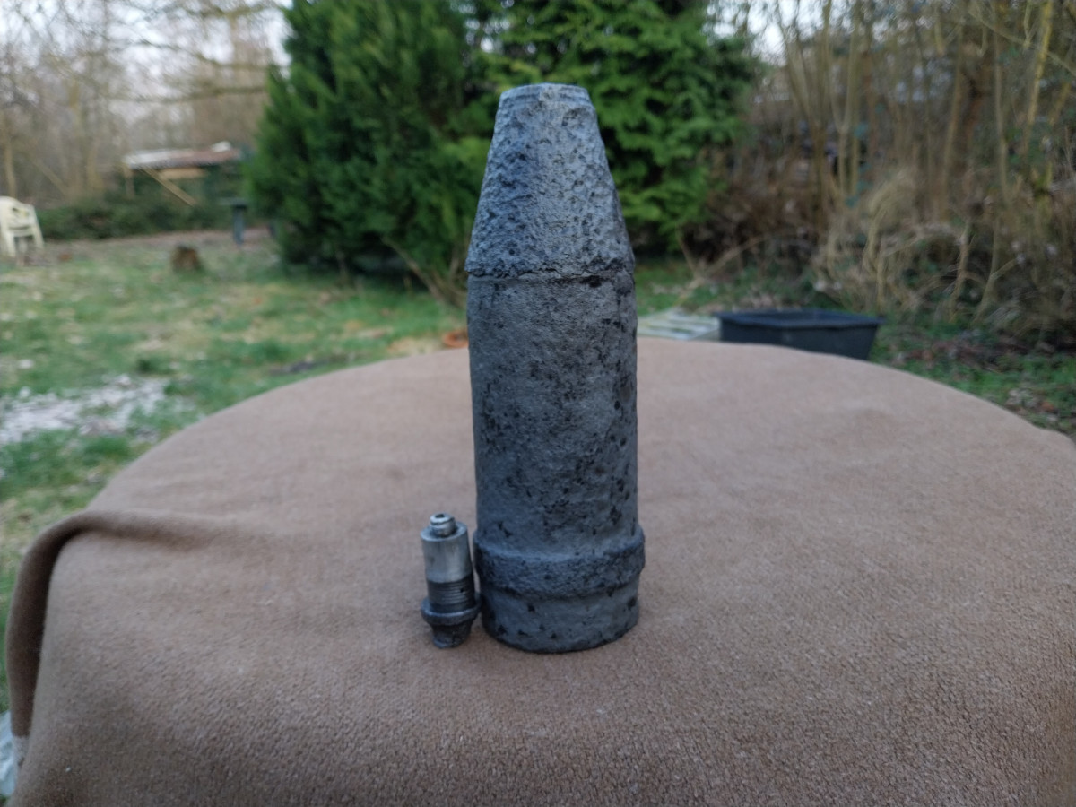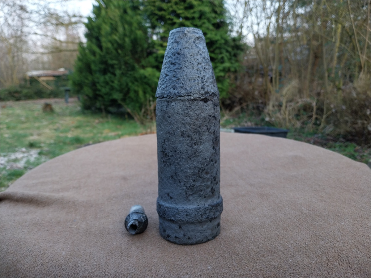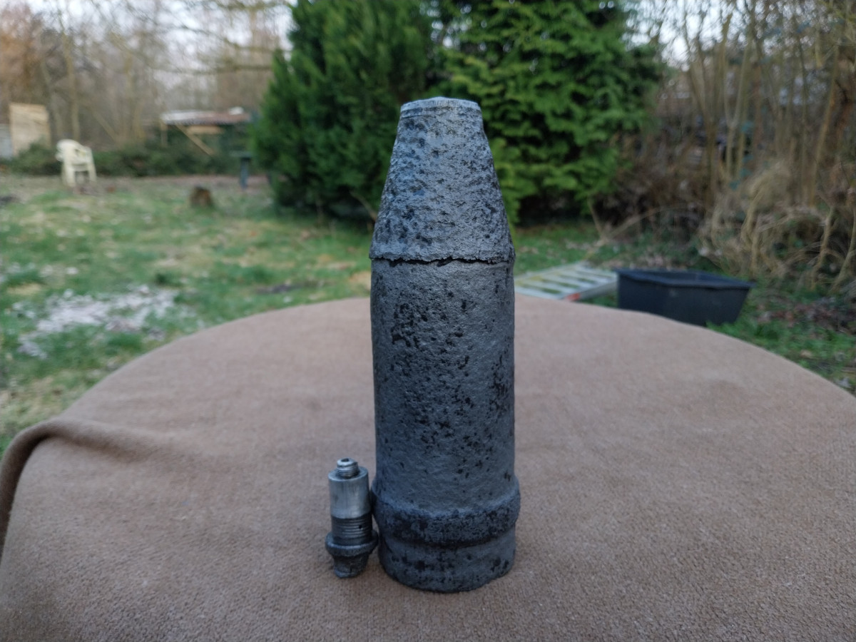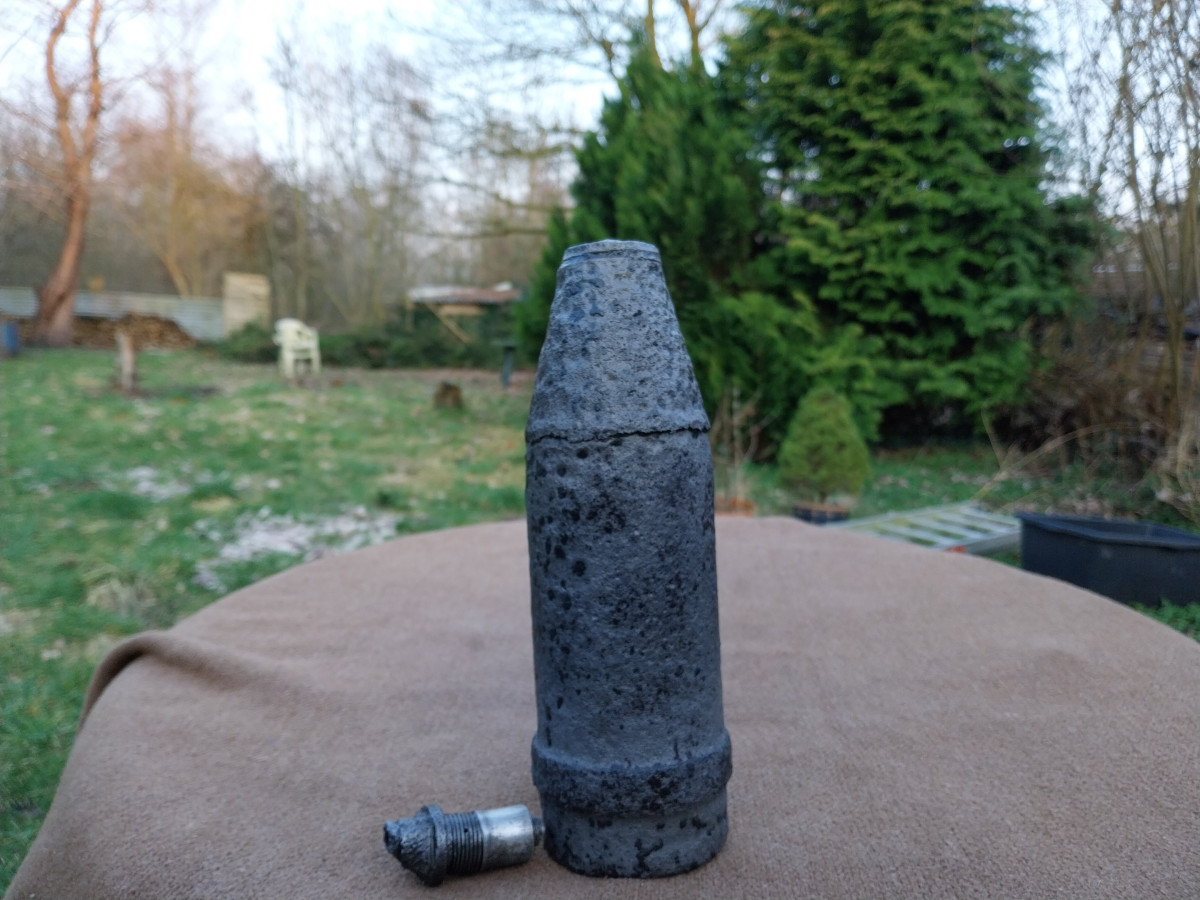 Zum Verkauf kommt eine 7,5cm Panzergranate 39 mit Bodenzünder 5103. Die Granate wurde mittels Elektrolyse professionell gereinigt und anschließend konserviert. Die Granate besitzt kein Brösel oder schmutz mehr, wodurch die Sammlung verunreinigt wird. Die Granate hat den Bodenzünder "ausgehustet" der Zünder ist dadurch verformt und nicht mehr in die Granate einschraubbar. Laut den damaligen Verkäufer hier bei eGun gehört beides Zusammen. Sehr schöne Belegstücke!