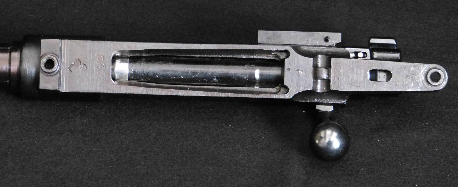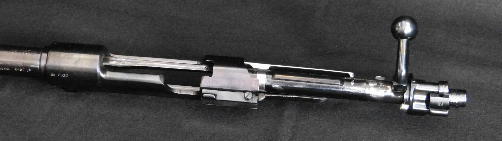 Kompletter Lauf, Verschluss, System ohne Visierung, ohne Magazinkasten. Verkauf wie abgebildet. Mit gültigem Beschuss Ulm aus dem Jahr 2009. Auf der Verschlusshülse beschriftet „Göser“ ein Büchsenmacher aus der Nähe von Ulm, keine sonstigen zeitgenössischen Stempelungen / Markierungen. Am Lauf äußerlich einige Kratzer.