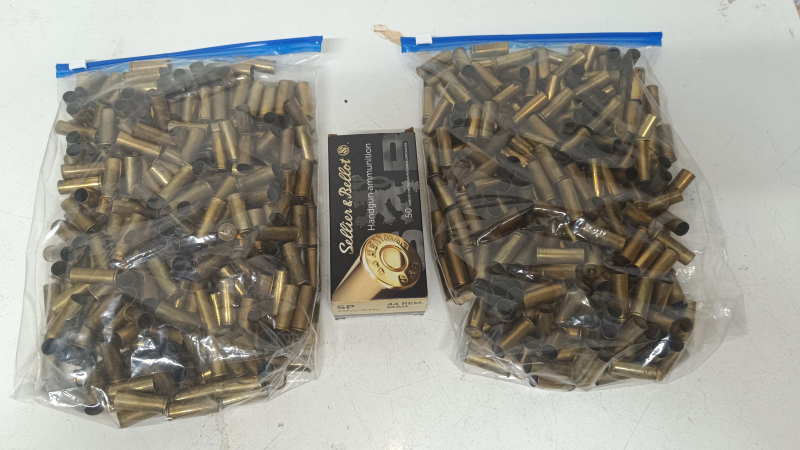 600 Hülsen .44 mag. Verschiedene Fabrikate. Ungereinigt und nicht entzündert. Einmal abgeschossen.