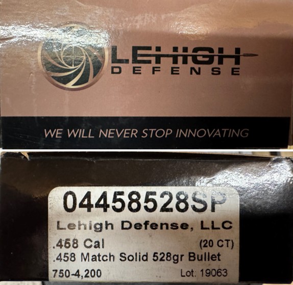 20 x Lehigh Defense .458 - 528 grain Match Solid Target