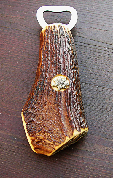Flaschenöffner , Hirschhorn mit altem Jagd Abzeichen vor 1945 , Rest siehe Bilder.