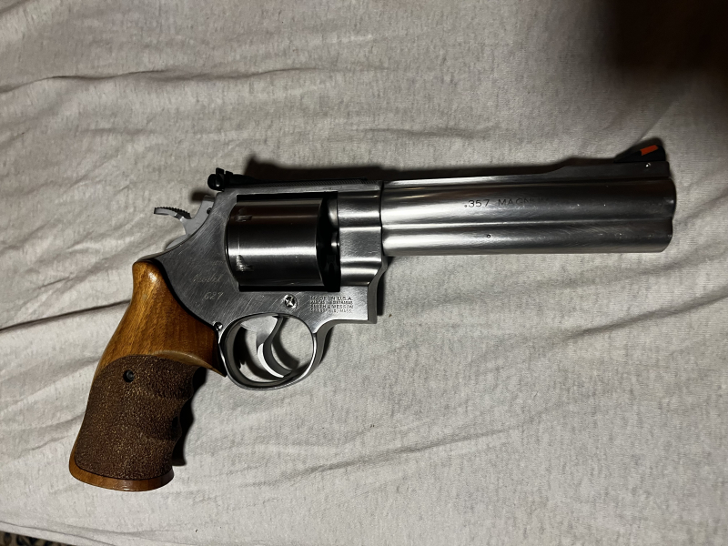 Biete einen Smith & Wesson 627 an. Revolver hat Kaliber .357 Magnum im schweren 44er Rahmen. Kein Trommelspiel.