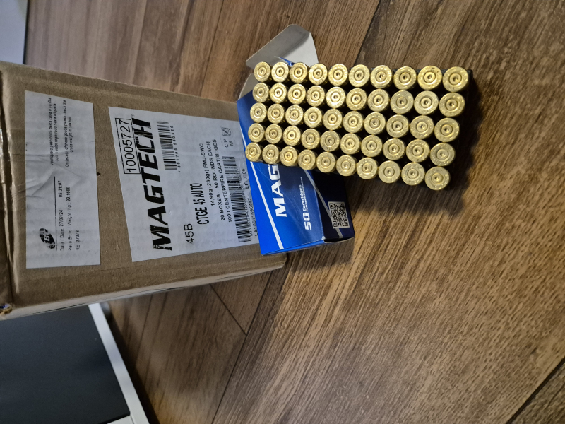 Zum Verkauf stehen 1000 Hülsen Magtech im Kaliber 45.ACP in der Originalverpackung inklusive Umverpackung.