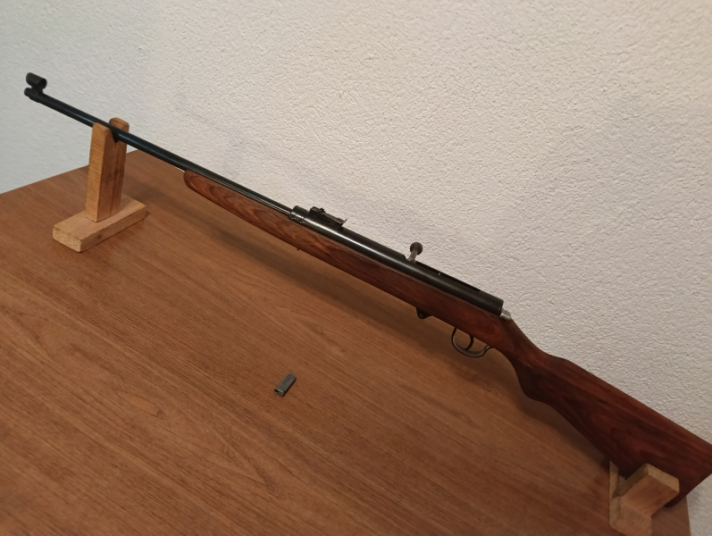 verk.dieses DDR-Luftgewehr Haenel 49a.Druck und Funktion sehr gut.Flügelsicherung funktioniert.Druck und Funktion sehr gut.Kimme (höhenverstellbar)und Kornschutz wohl nicht orginal,passt aber wie dafür gemacht.Gute rostfreie Brünierung.Rissfreier Schichtholzschaft.Die Löcher für die Trageriemenösen wurden verschlossen(Holzkitt oder so).Dazu gibts ein 6er Magazin.Privatverkauf,keine Rücknahme,Garantie,Nachverhandlung