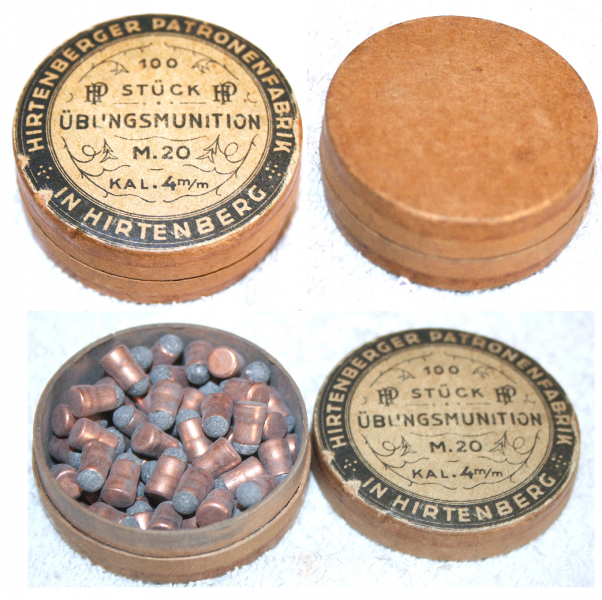 Sie bieten auf sehr altes Döschen aus Pappe mit Patronen 4 mm M 20. Hergestellt von Hirtenberg in Österreich. Weiteres siehe Fotos, sie zeigen das Päckchen aus dieser Auktion. Privatverkauf aus Sammlungsauflösung.