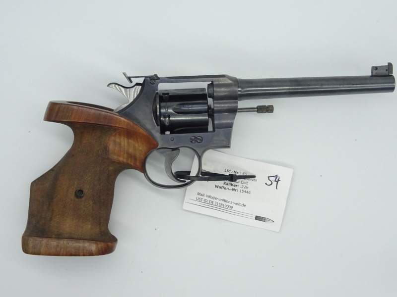 Im Kundenauftrag wird dies Kleinkaliber Revolver des Herstellers COLT Model OFFICERS im Kaliber .22lr verkauft. Leichte Gebrauchsspuren sind vorhanden. Trommel und Lauf befinden sich in einem einwandfreien Zustand.