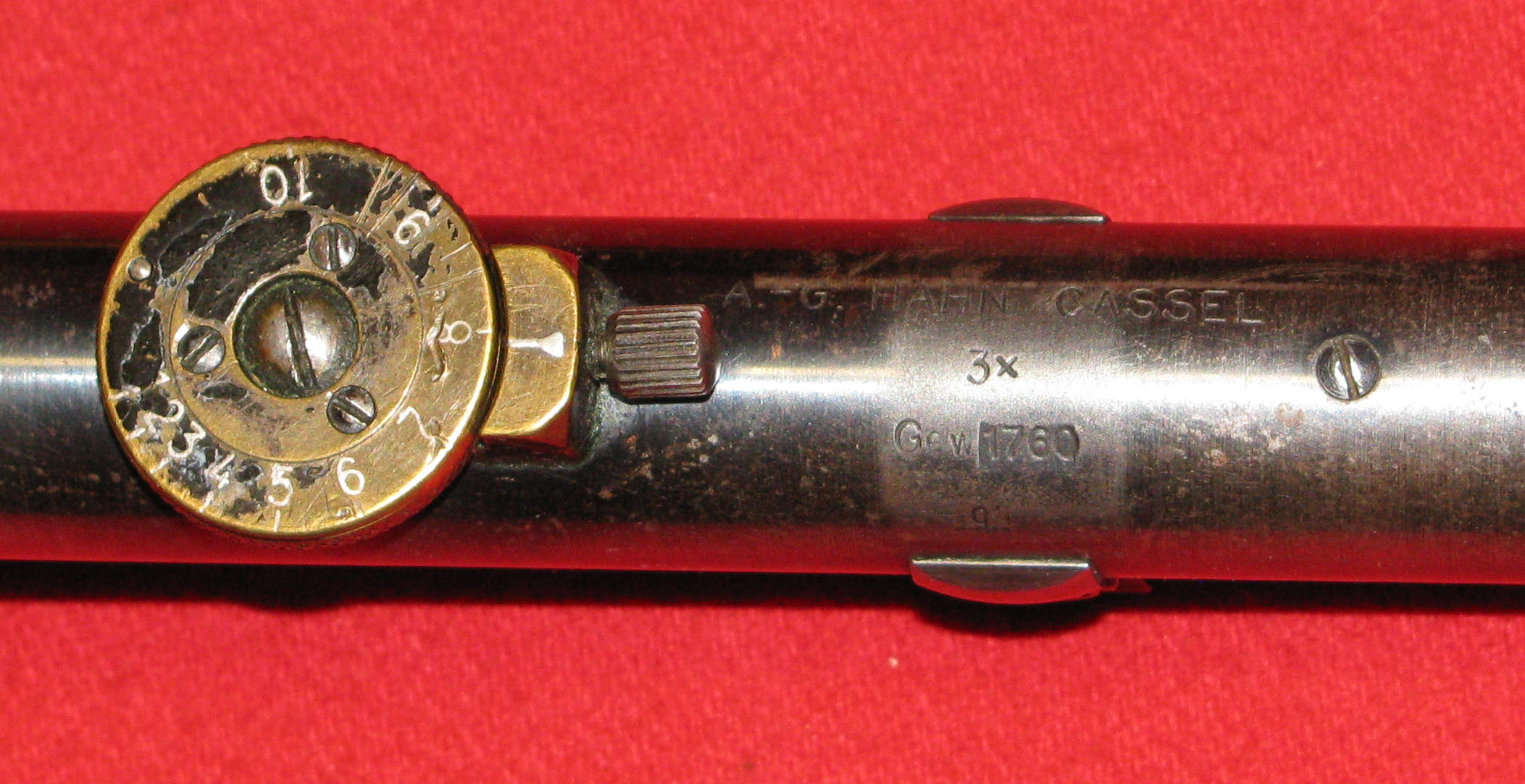 Mit Metereinteilung 1 - 10 und Gewehrnummer, Gew. 1760 q und den Lederkappen