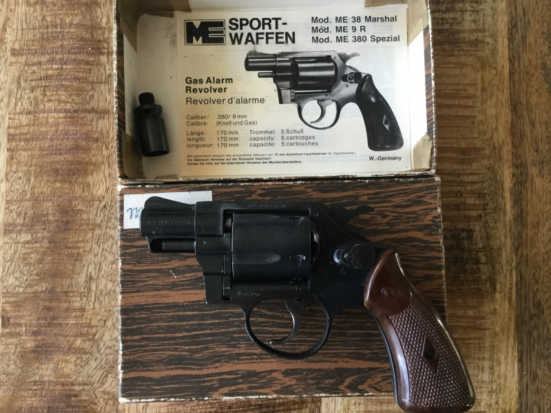Ich biete einen Me 38 Marshal Revolver im Kaliber 9mm R.K an!Er ist 1992 beschossen worden und er befindet sich augenscheinlich in einem relativ guten Zustand,mit ihm ist wohl noch nicht viel geschossen worden!Die Laufsperre ist nur ein dünner Steg in der Mitte,der Rest ist offen wie ein Scheunentor,damals durfte man soetwas noch herstellen.Die Trockenfunktion ist soweit gegeben,lediglich der Stift,Ausschwenkachse?packt nicht mehr,daher biete ich ihn als Defekt an!Dabei ist der typische Karton,ein Merkzettel und ein Abschussbecher!Ich habe die Versandkosten mit DHL versichert ausgelegt,eine andere billigere Variante evtl Hermes ist möglich.Die Bezahlung mit Paypal an Freunde wäre perfekt,eine Überweisung ist natürlich auch möglich!