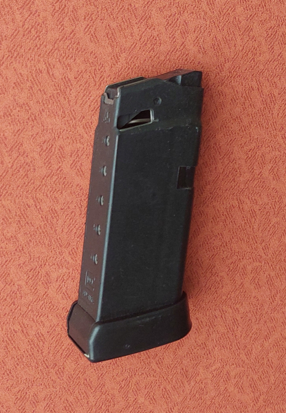 Ein Original-Magazin für Pistole "Glock 36" / Kal.: .45 Auto / Kunststoff-Ausführung / der Versand ins EU-Ausland kostet ca. 17,-€ /