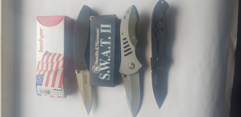 Sammlungsauflösung . 1 Kershaw-Messer, Klinge 8cm, 1 Smith&Wesson-Messer, Klinge7,7cm. 1 Colt-Messer, Klinge 7,4cm. Alle unbenützt, sehr guter Zustand, siehe Fotos! Privatverkauf daher keine Rücknahme und Garantie.