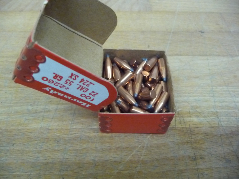 Hier wird z.B. eine angebrochene, fast volle Packung an Hornady Geschossen im Kaliber .22 angeboten.